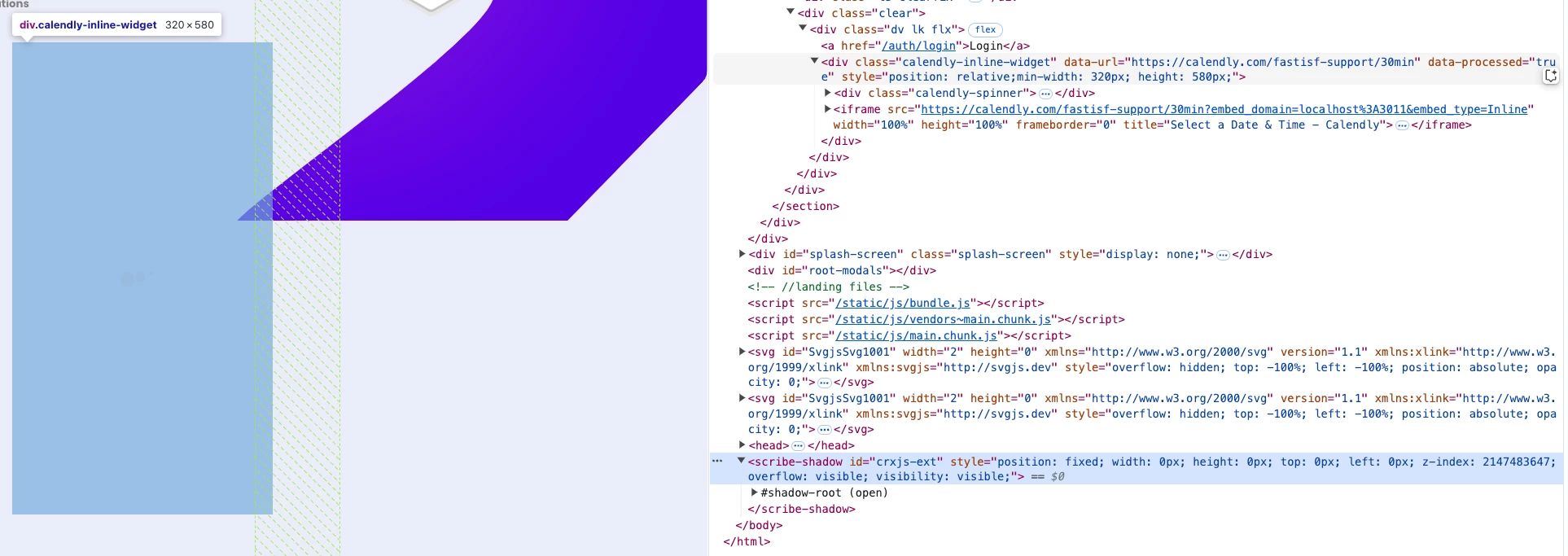 What I have observed is - I get a “scribe-shadow” HTML element which has the max z-index value, so I dynamically try to bring its z-index down and our calendly-popup z-index up so that I can view the iframe content - no effect.