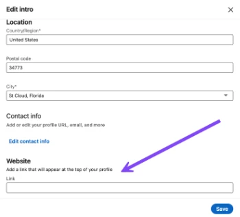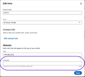 - Add your existing Calendly link to your LinkedIn profile's Website section.
