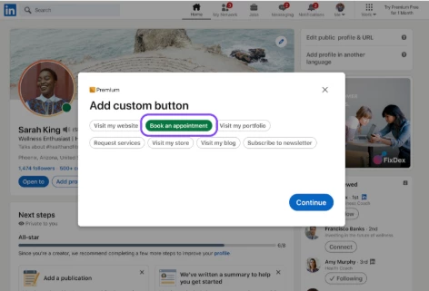 New and existing Calendly users can showcase their availability right on their profile, making it easy for visitors to schedule time with just a click. And if you're a LinkedIn Premium user, you can unlock the Book an appointment button for an even faster way to connect.