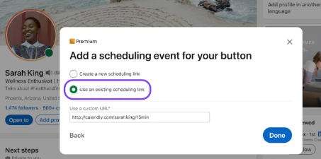No matter your LinkedIn or Calendly plan, adding your scheduling link to your profile helps others connect with you faster.