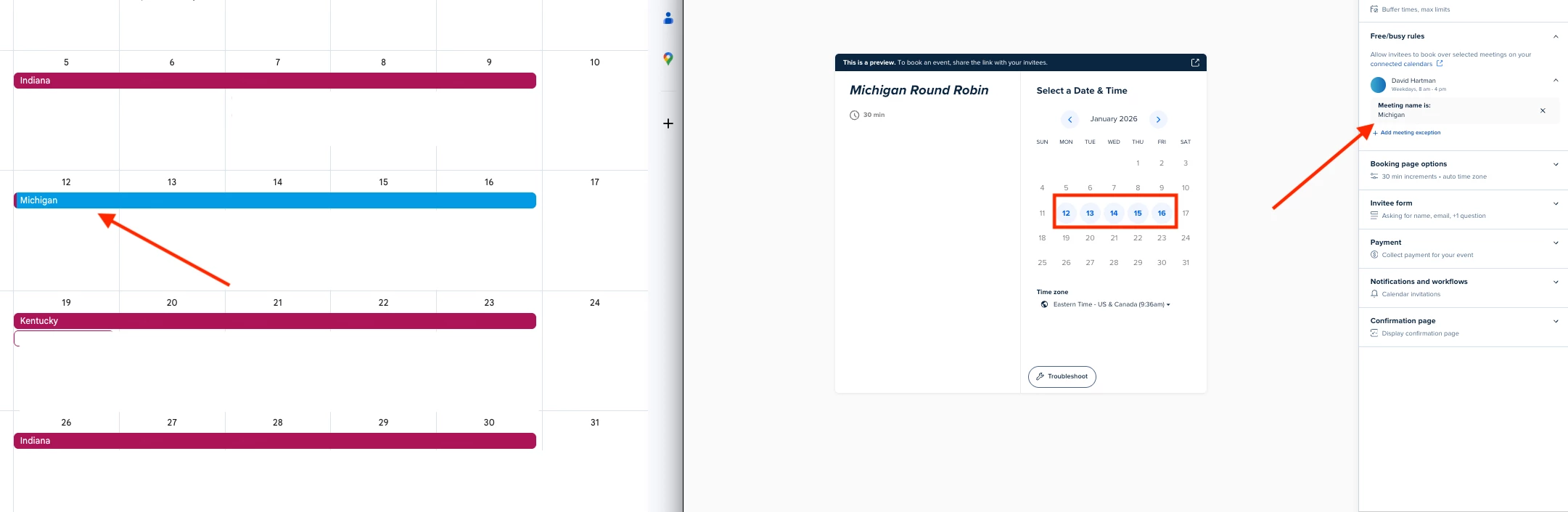 …we want Calendly to optionally show another coach who is scheduled to be in that depot during that same week.