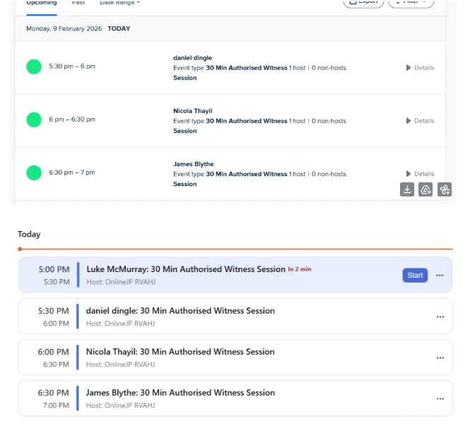 We have reported this problem a number of times. Please let us know that your engineers can fix it! It’s a real problem when our clients (who can be located anywhere in the world) miss out on an appointment to get (sometimes crucial) legal documents witnessed.