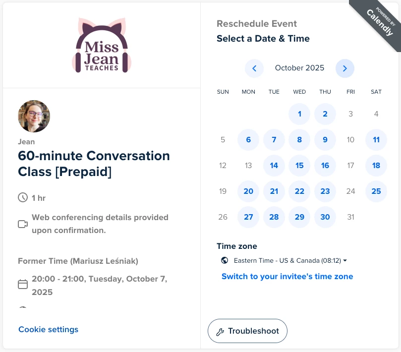 Now here’s the problem. I’m trying to reschedule a Tuesday booking to Friday. But here’s what I see when I try to do that: