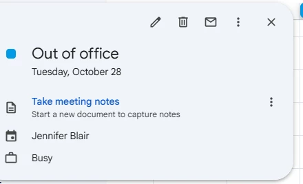 I am attaching screenshots. I feel like I have followed as best as possible previous posts. Even creating an event on Google “Out of Office” different from their default so I could select “busy” did not work. Please help me figure out why this is not working for me to block in Google and not have it recognized by Calendly. Thank you!