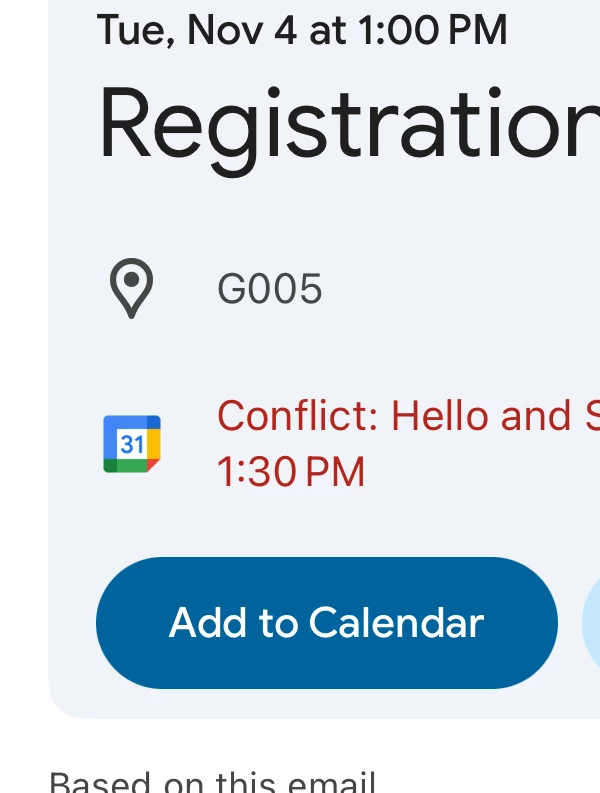 Hello, does anyone know why it says “conflict” on the email confirmation? And how to fix this? Image is attached with the message.