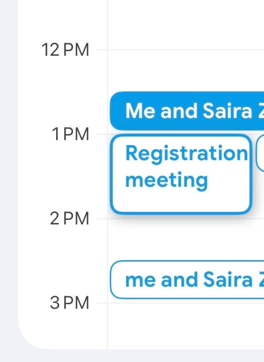 This is what I see. I see the “Registration meeting” but it is not available on the app for me to delete or modify.