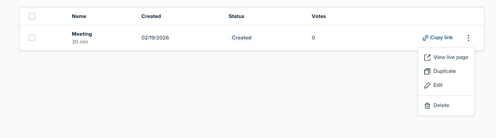 Is there any way to set up a meeting poll using a previously-created meeting type, or a way to select a previously-created meeting type when setting up the meeting poll?