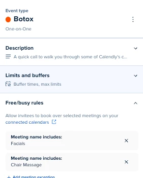 Hitting a roadblock and could use some help. We have a spa event which includes 3 event types to register for...botox, facials, and chair massages. All event operate during the same time period 11am-3pm. I need to set my calendar up so that people can register for each service but without blocking the time out for all day. In other words if someones picks 1pm for botox I still need 1pm available for facials and chair massage. Please help and THANK YOU!