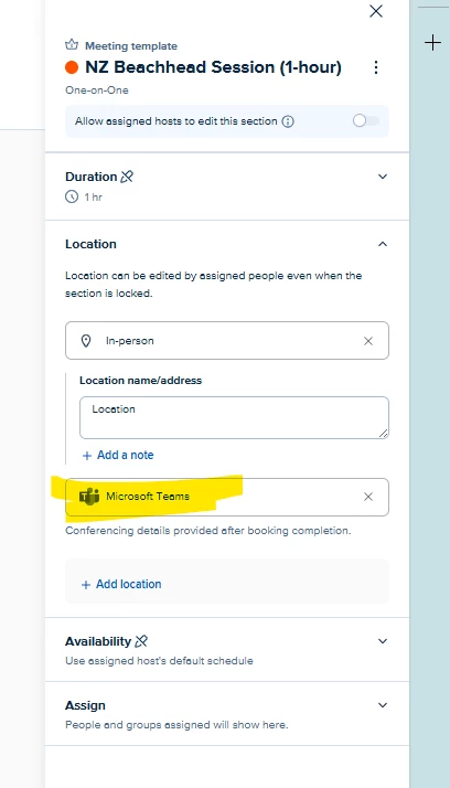 I manage a group of individuals who are assigned to a series of ‘managed events’. We’ve recently made the shift from zoom to M365 Teams, and all individuals have integrated this app. From each managed event, I have removed zoom, and added M365 Teams to the location (see image 1). However, this doesn’t seem to be reflected in the booking system (see image 2). How do I fix this fast so we don’t disrupt users.