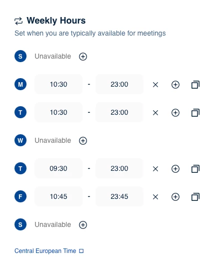 My situation cannot be simpler. I have just one event, and I have just one schedule. I should be available until 11 pm / 23:00 CET. However if I go to the booking page everything stops after 2 pm CET. To me it really feels like a bug, but very likely I have made somewhere a very big mistake. I just don't see it. I hope someone can really help, since the chatbot sends to me dark places in the toggle wood.
