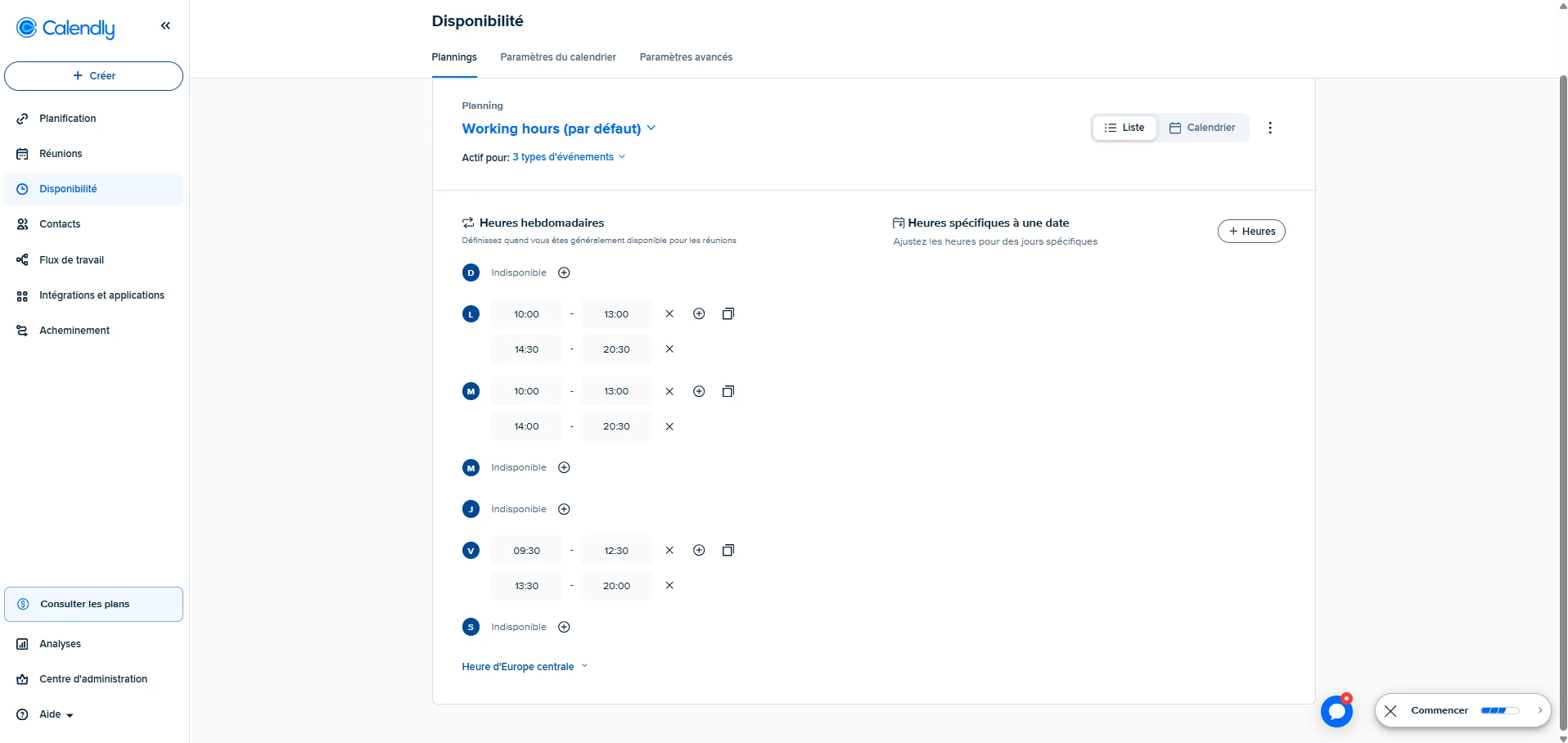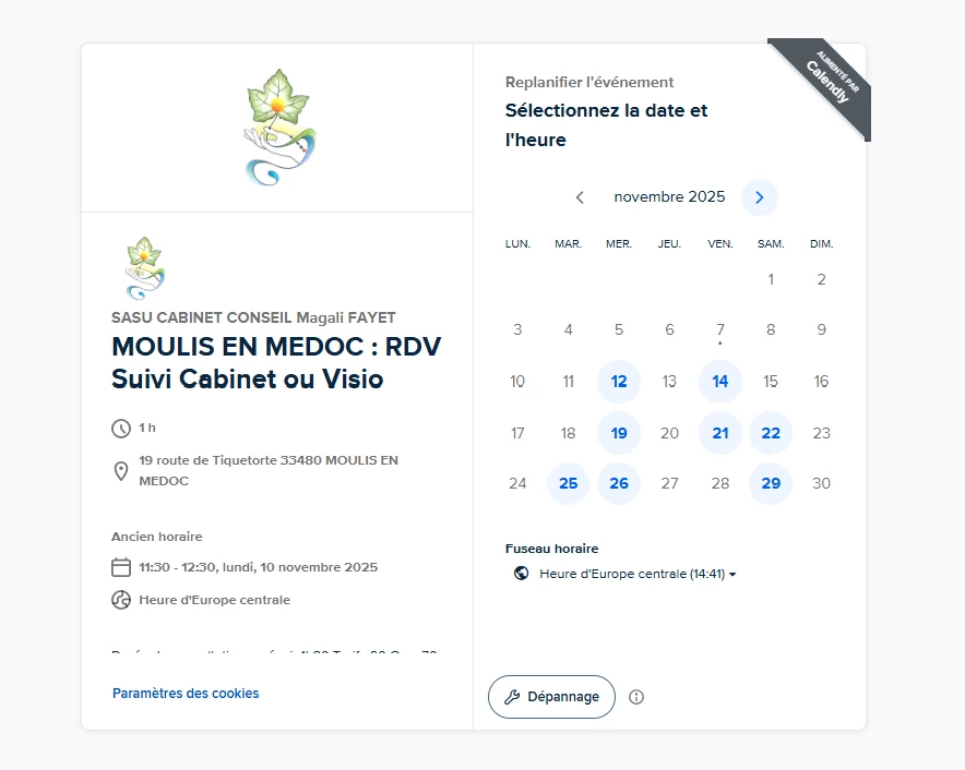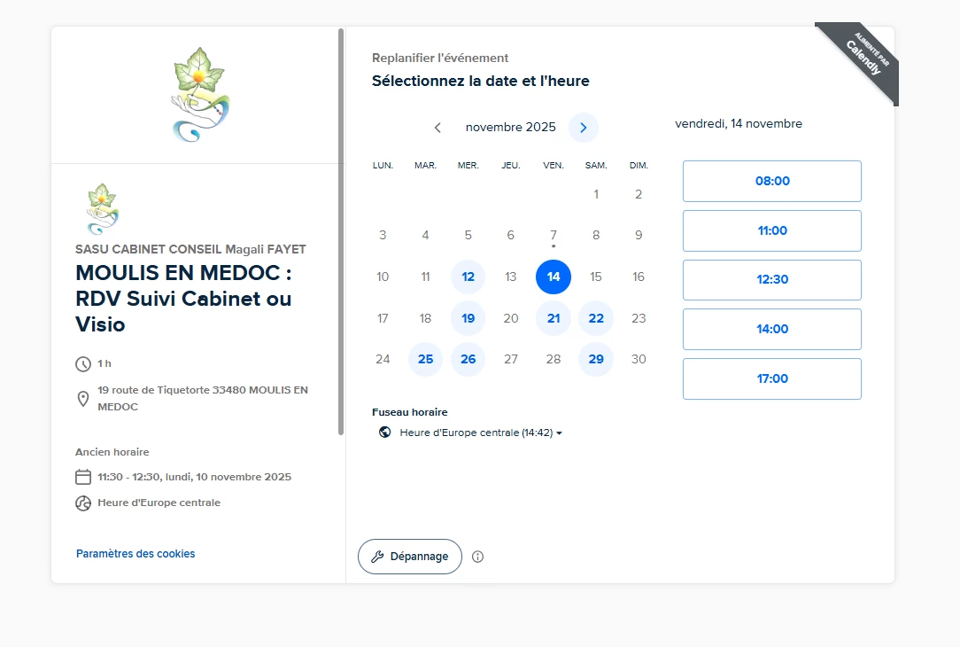 mes disponibilités enregistrées sur calendly et celles accessibles par mes clients sur le lien de replanifications sont différentes.