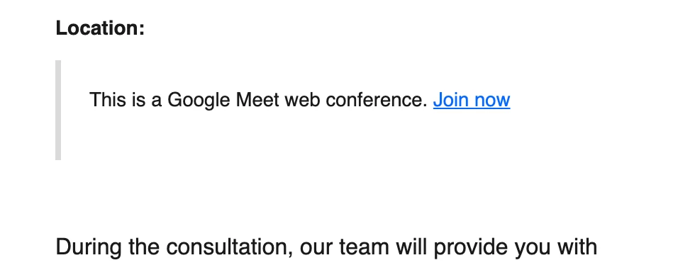 It might be relevant that our clients can choose from two option for the ‘Location’ : an in person meeting or a zoom call.