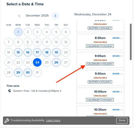 I’ve followed the steps to connect both my Google calendars to Calendly (and, yes, I’ve disconnected and reconnected them). It says in the Availability section that it’s ready (see below). However, my meetings sections shows a blank, even though there’s multiple meetings in both calendars already.