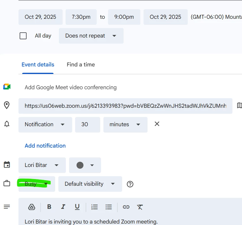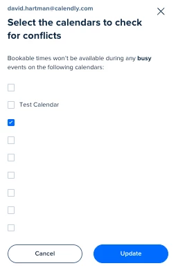 - I had an appointment scheduled at 6:00 Wednesday the 29th on my Google calendar and had to CHANGE the client to accommodate the calendly meeting that overbooked to that occupied/busy time slot.