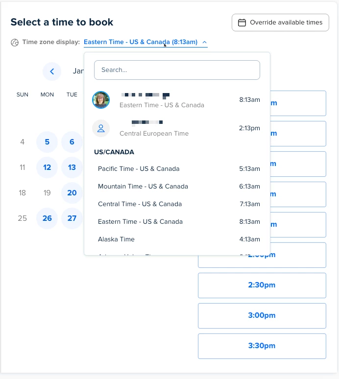 When selecting a contact than choosing a time for us to meet, it USED to show the Calendar in MY time zone, then when selecting a potential meeting time, it would show in their time zone AS WELL right below mine. It made it really easy to communicate when scheduling with people on calls when they lived in different time zones.