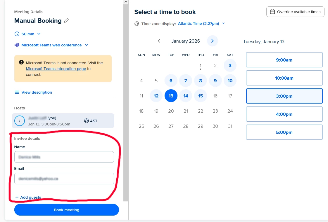 No longer showing time-zone conversions when booking with contacts?