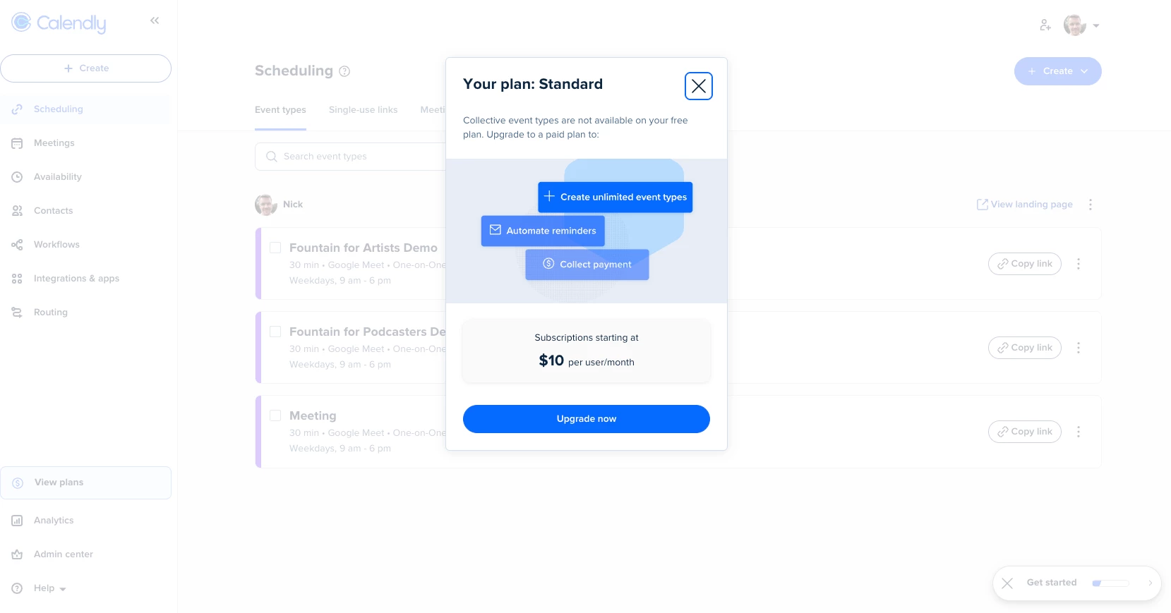 I recently upgraded to the Standard plan. I’m trying to create a “Collective” meeting type but I keep getting this message.