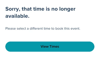 “Sorry, that time is no longer available. Please select a different time to book this event.”