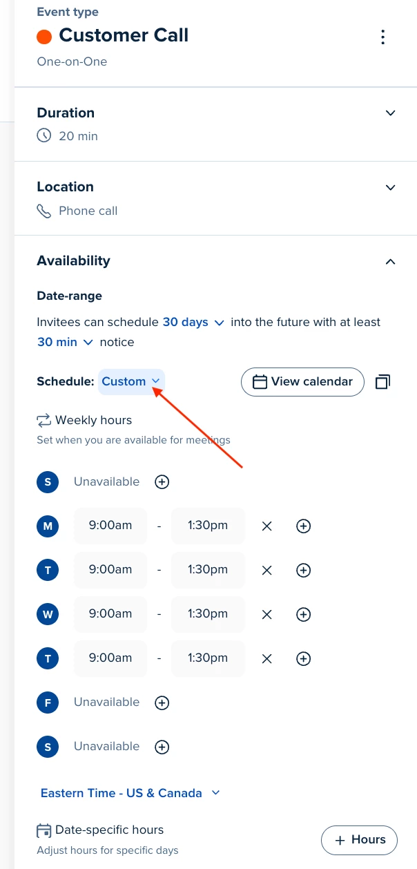 I go in Avaibility in schedule