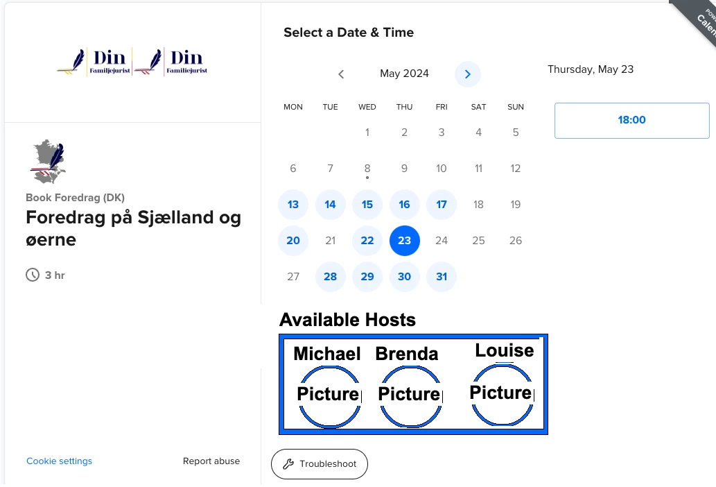 Let’s say I have 5 hosts on a round-robin event. 3 of them are available at the specific time, our Meeting Booker, wants to arrange a lecture at the venue we’re talking to.