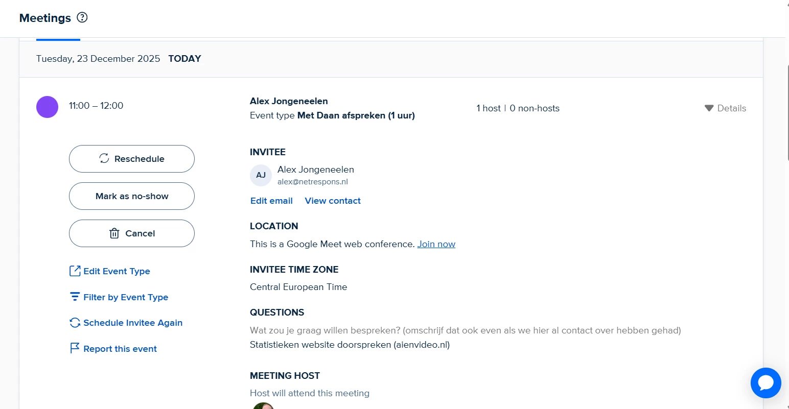 I have the Google Meet option for my appointments.