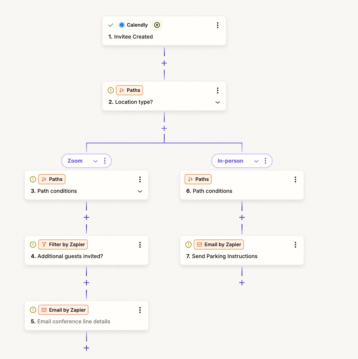When a client schedules a meeting, they set a location: in person at my office, on Zoom, telephone. What I wanted to do was, if they set a meeting in person, I wanted a custom email to go to them with parking instructions, and instructions on how to get from the parking lot to my office (it isn’t intuitive). I see no need for this information to go to someone who books Zoom/telephone. So, that’s use case #1.